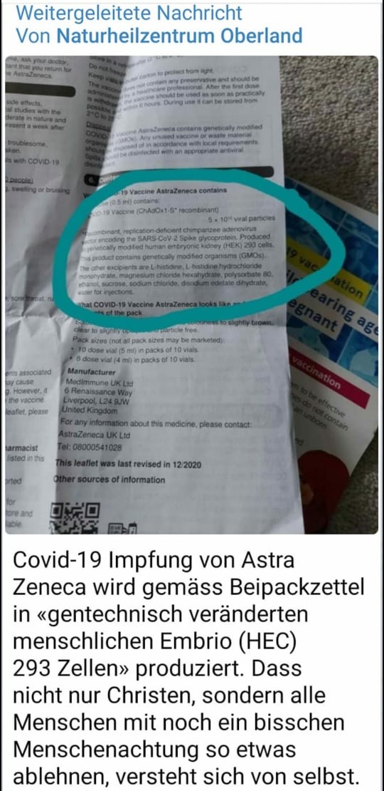 ZitatAlso ich würde mich weder mit dem mRNA-Impfstoffnoch mit dem Astrazenecazeugs (Vektor) impfen lassen.