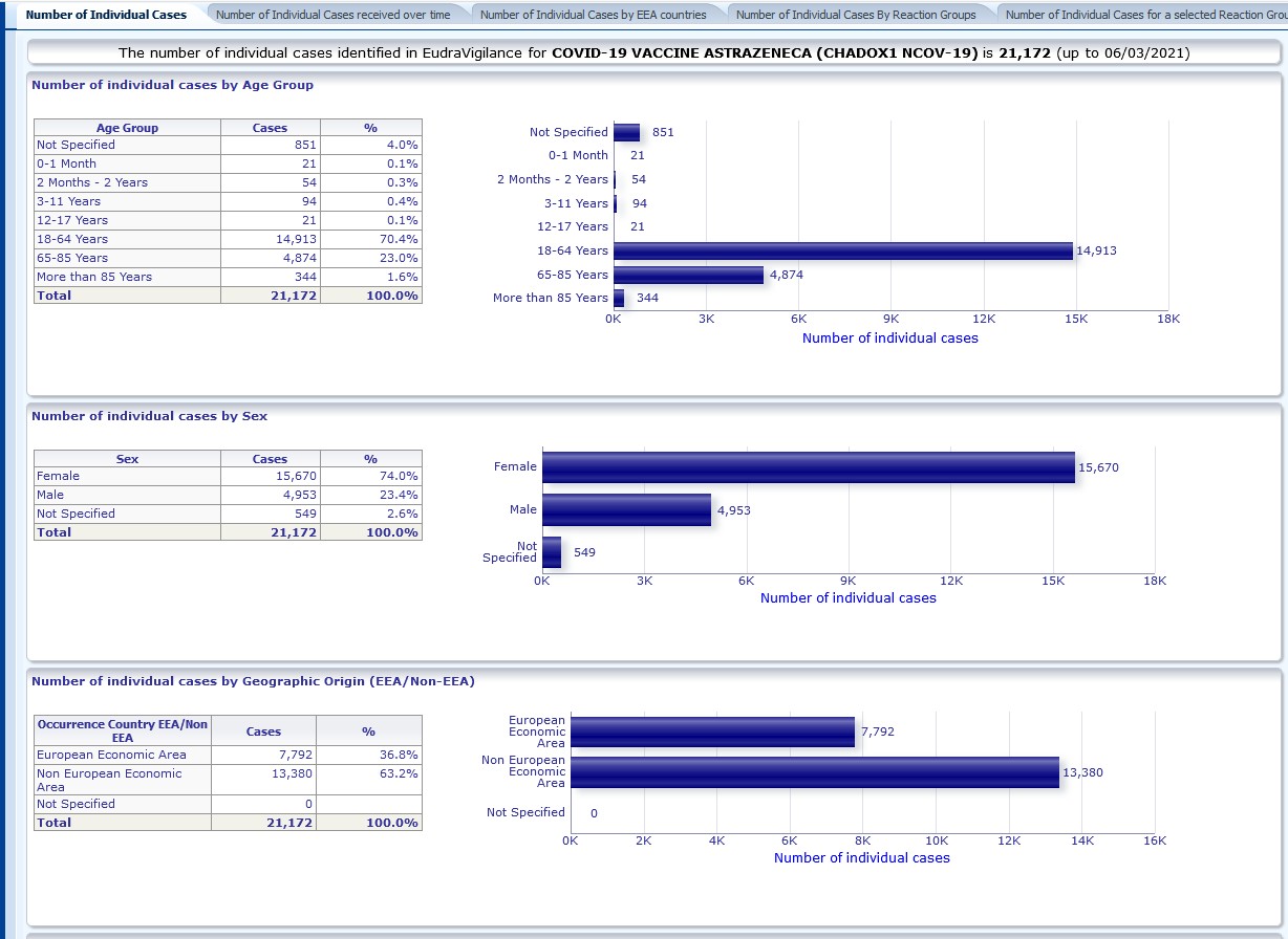 Es gibt eine offizielle Seite der EU zu den Verdachtsfällen von Nebenwirkungen zu allen möglichen Arzneimitteln.