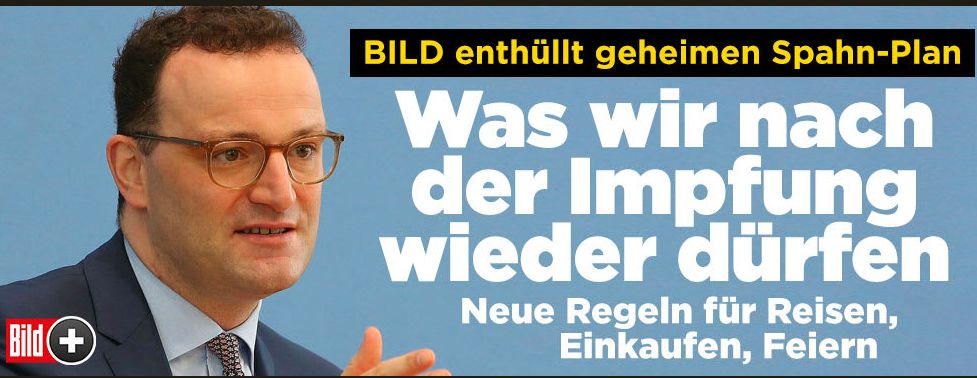 Jetzt hat er sich ganz und gar dem Impf-Marketing verpflichtet, Neues aus Entenhausen. Die Merkel haut den Bundesdiktator raus und Spahn setzt voll ganz auf ein Paradies nach Impfung. Sind sie nicht lustig unsere Amateur-Schauspieler. Vor allem Bild enthüllt geheimen Plan, steht da etwa Geheimdokument auf dem Fax? ![]()