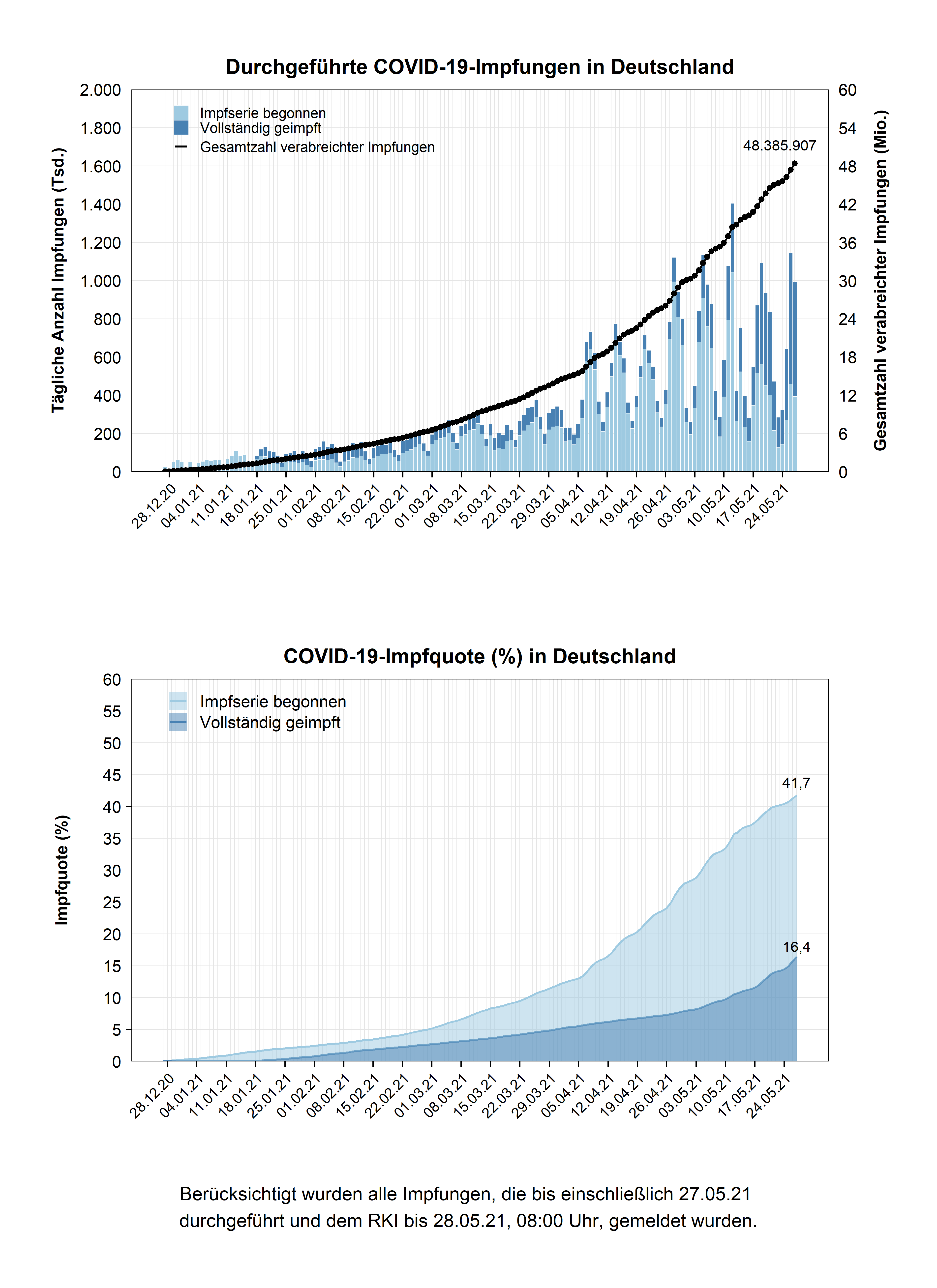 Die Zahl der Erstimpfungen liegt bei 34,7 die der Zweitimpfungen bei 13,5 Mio.