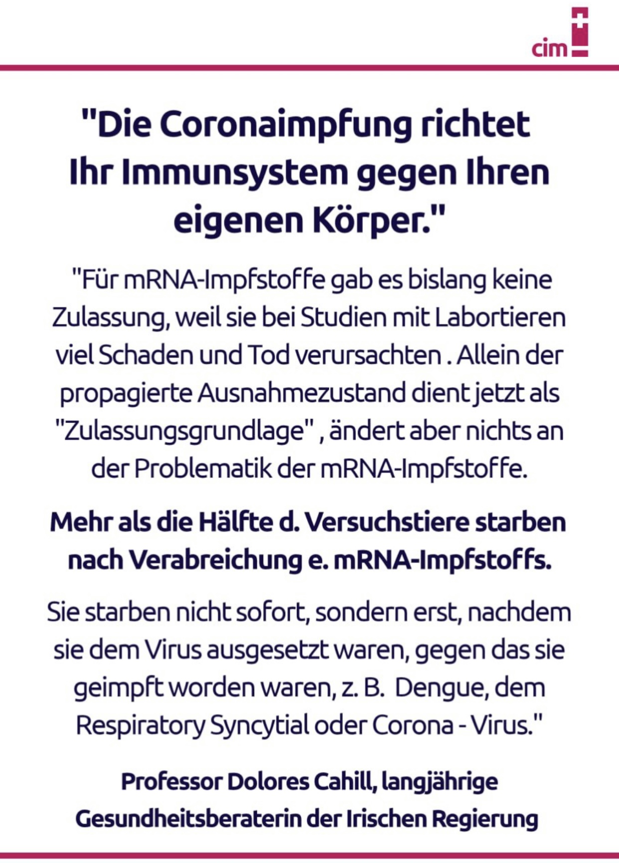 Seine Partnerin, voll neurotische Radiologin, fühlt sich aber als megauniverselle Superärztin, die Alles und das auch noch besser weiss. Beide natürlich voll durchgeimpft.