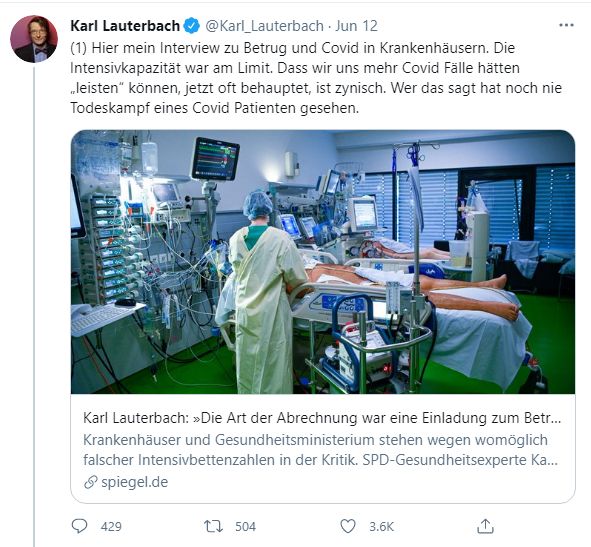 Der Karl mal wieder, er hat zwar selber mit sehr hoher Wahrscheinlichkeit noch keinen Covid Patienten im Todeskampf gesehen, aber vom "hören sagen" reicht bei ihm ja auch aus um das Studien-Orakel in Talkshows zu spielen.
