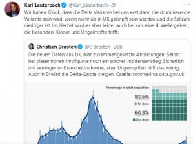 „So führt der Urlaubssommer nicht zu einem Sorgenherbst.“ Auf die Frage, ob die Menschen trotz Delta-Variante sorglos ihren Urlaub buchen könnten, sagte er: „Grundsätzlich ja. Bei Reiseländern, die von der Delta-Variante bereits stark betroffen sind, sieht das aber anders aus.“ Dort sei das Risiko, sich anzustecken und die Virusvariante nach Hause zu bringen, deutlich höher. (blöd)