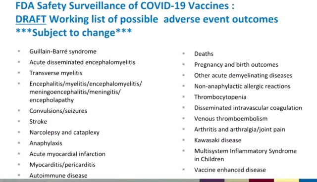 • Liste der Impfnebenwirkungen bei einer Präsentation der US FDA für eine Sekunde sichtbar?