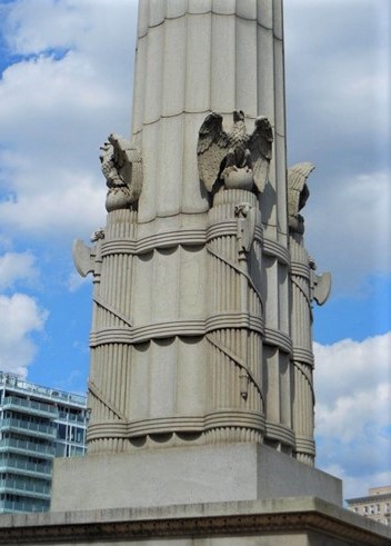 b) Rutenbündel mit Beil, den höchsten Magistraten im alten Rom als Symbol der Strafgewalt von den Liktoren bei einem alljährlichen Umzug vorangetragen. Das Beil wurde innerhalb der Stadtgrenzen von Rom dann nicht mitgeführt, weil die Bürger nicht mit der Todesstrafe bedroht werden konnten, nur die grosse Masse aller anderen.
