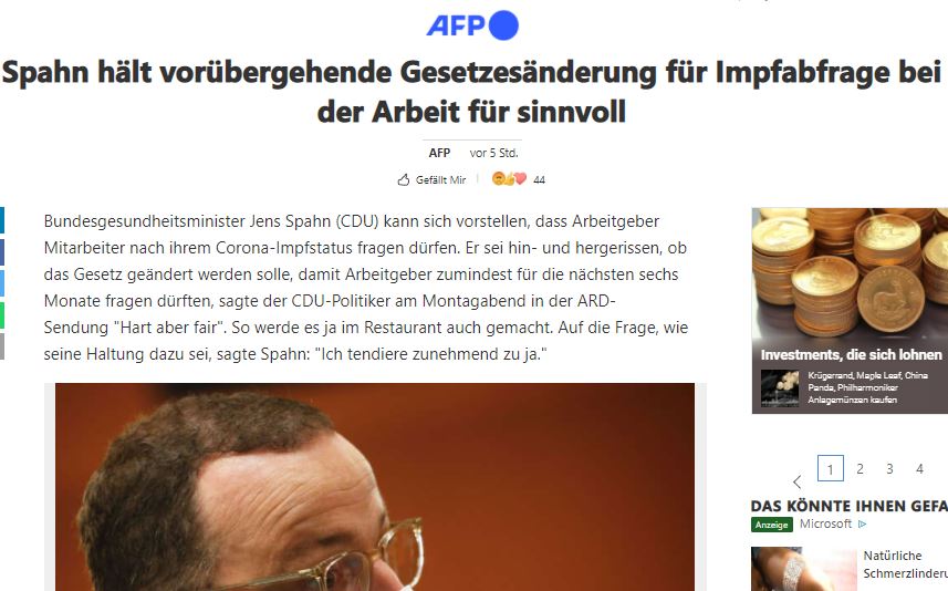 das sind alles Impf-Nazis (Dr. Joseph G. hätte seine Meister gefunden!). Unfassbar. Den Spahn hätte ich einfach mal auf seine bekloppte Aussage gefragt, ob er das bei den Folgen von Fettleibigkeit, Alkoholismus, Rauchen oder Sport auch so sieht? :wall:
