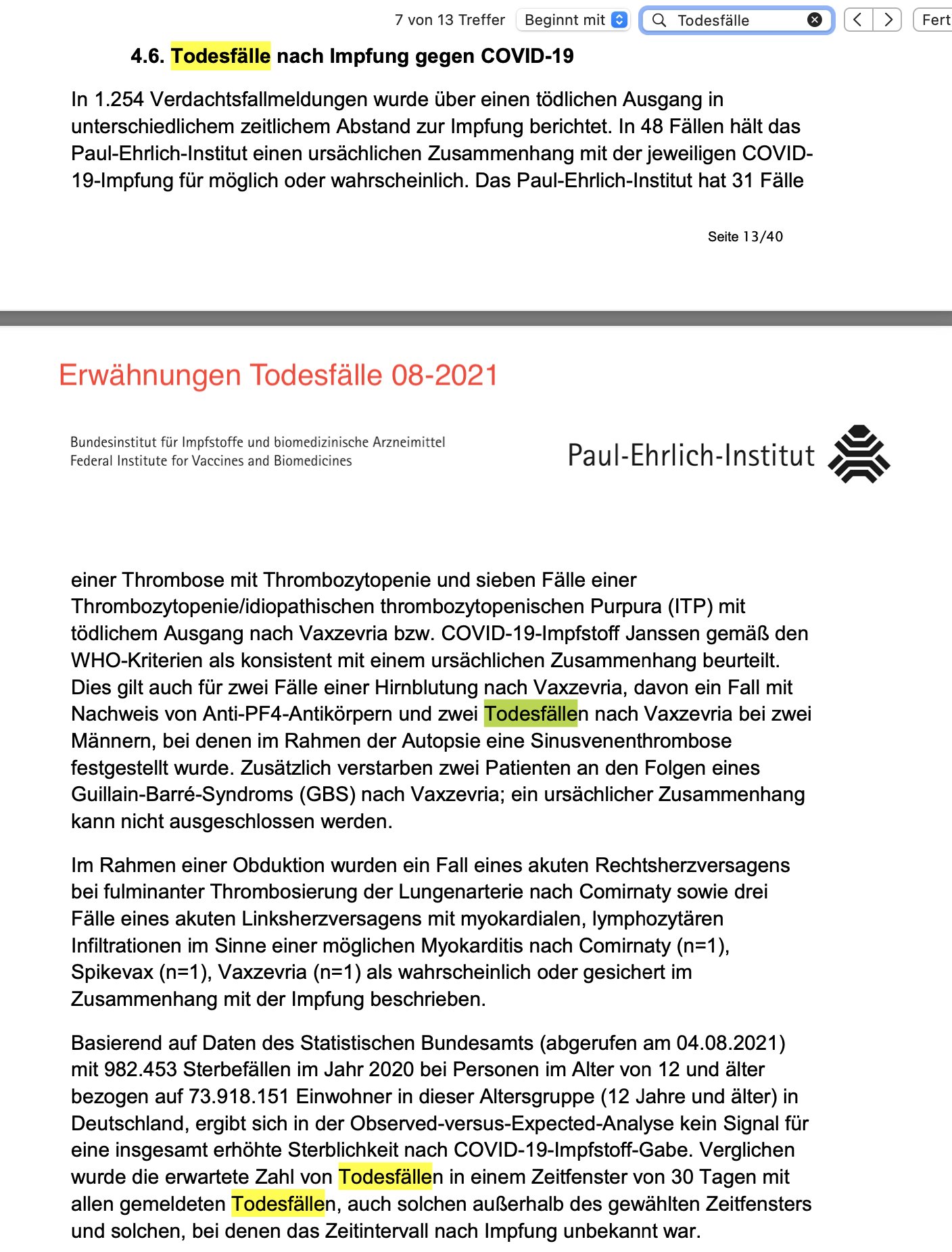 Unter Punkt 4.4 werden die "Verdachtsfallmeldungen mit tödlichem Ausgang" weiterhin berichtet, nur eben nicht mehr unter einem eigenständigen Gliederungspunkt.Die Detaillierung lässt natürlich zu wünschen übrig...