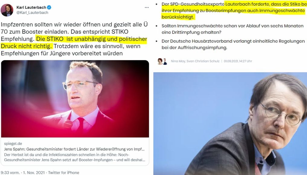 Die STIKO ist fast unabhängig abhängig. Karl will wieder Zelte aufbauen, seit Tagen kein anderes Thema, wäre er Gesundheitsminister wäre die Impfung wie das tägliche Zähneputzen.