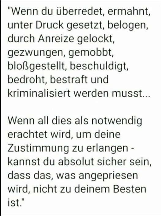 Die Zahl an Ungeimpften wird ein wenig überschätzt, der Ausschluss einer direkten Impfpflicht in fast allen Ländern ist doch kein sozialer und demokratischer Akt, das haben die Global Player bewusst verboten. In Australien tragen Ungeimpfte Fußfesseln, aber eine direkte Impfpflicht geht gar nicht. ![]()
