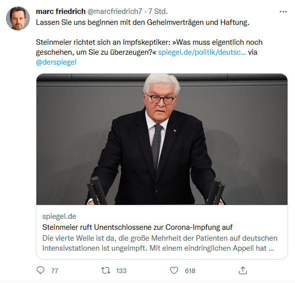 Warum dieser Druck und Angstmache zur dritten Impfung, obwohl klar ist, dass die dritte Impfung, dieselbe ist wie die erste und zweite, folglich genauso mangelhaft ist?