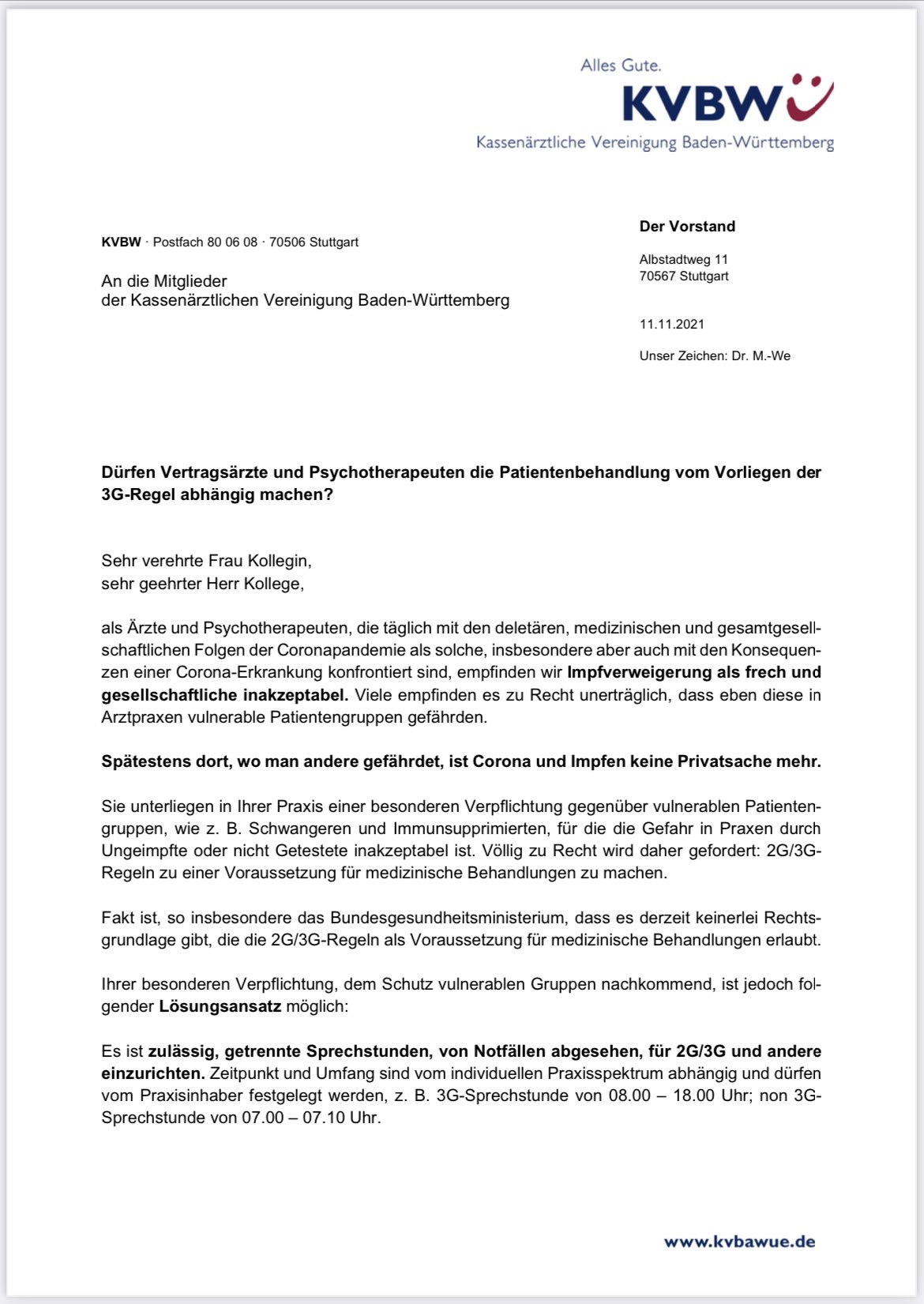 Es ist zulässig, getrennte Sprechstunden, von Notfällen abgesehen, für 2G/3G und andere einzurichten. Zeitpunkt und Umfang sind vom individuellen Praxisspektrum abhängig und dürfen vom Praxisinhaber festgelegt werden, z. B. 3G-Sprechstunde von 08.00 – 18.00 Uhr; non 3G-Sprechstunde von 07.00 – 07.10 Uhr.