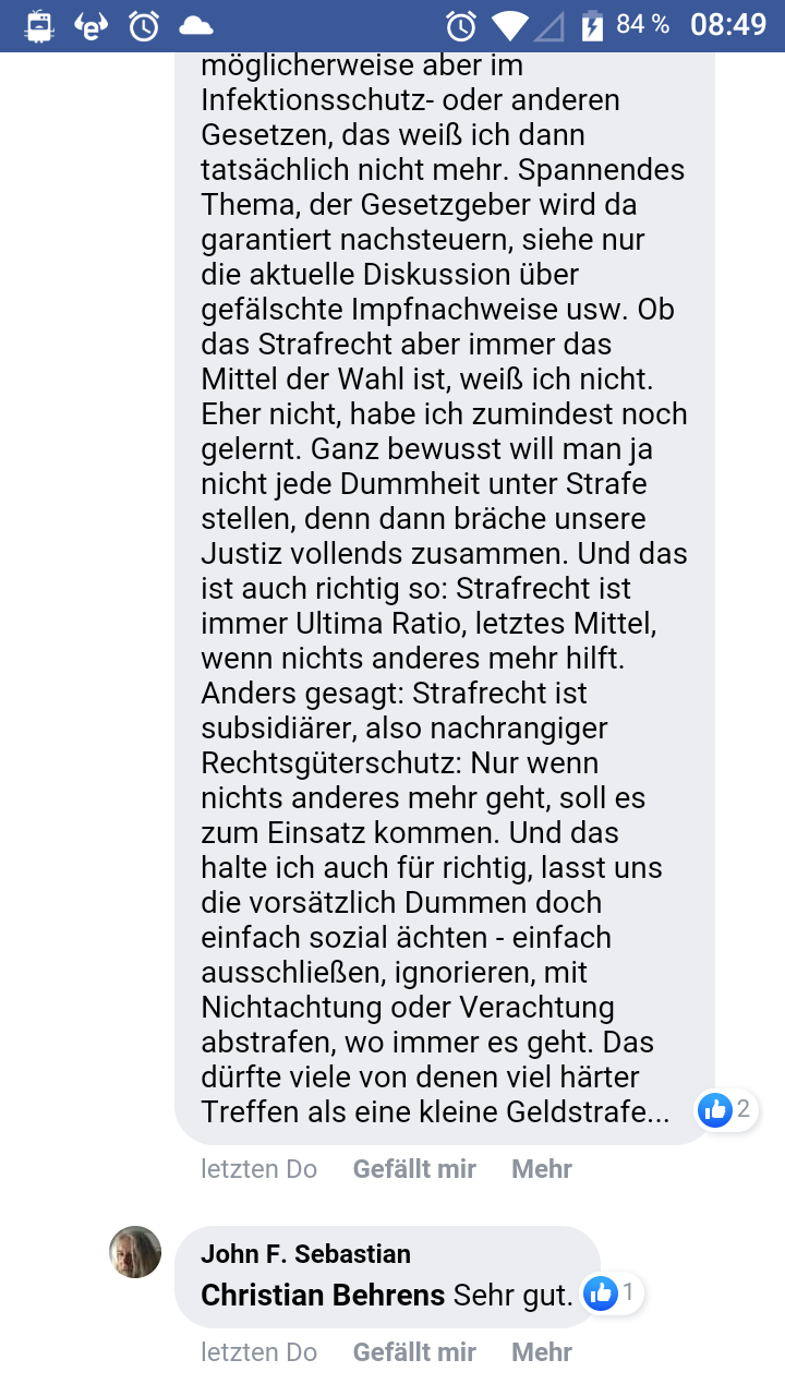 Den neuesten Schenkelklopfer will ich euch nicht vorenthalten. Und nein, der Typ mit dem zweiten Kommentar meint das nicht sarkastisch, sondern aus dem spricht die pure Verzweiflung. Biodeutscher Familienvater mit zwei kleinen Kindern, musste sich im Leben alles hart erarbeiten und hält sich seit März 20 an "die Regeln" wie kein zweiter. Man kann da auch von der Echtausgabe des Ned Flanders aus den Simpsons reden ![]()