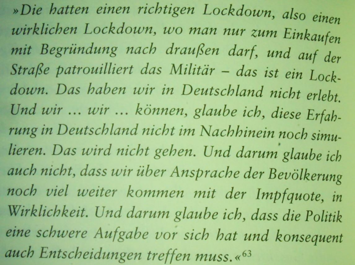 GoldhutWas Geimpfte nicht begreifen, sie schaffen sich mit einer Impfpflicht an Ungeimpften die Grundlage für ein Impf-Zwangs-Abo aus dem sie im schlimmsten Fall nie mehr rauskommen. Es endet auch nicht mit Corona, bei den Enteignungen die folgen geht es mit der Hetze an Wohlhabende/Reiche und Superreiche weiter. Später in der Klima-Agenda sind es dann die Verschwender und Klima-Terroristen, die sich nicht mit dem orwellschen Hühnerkäfig zufrieden geben.
