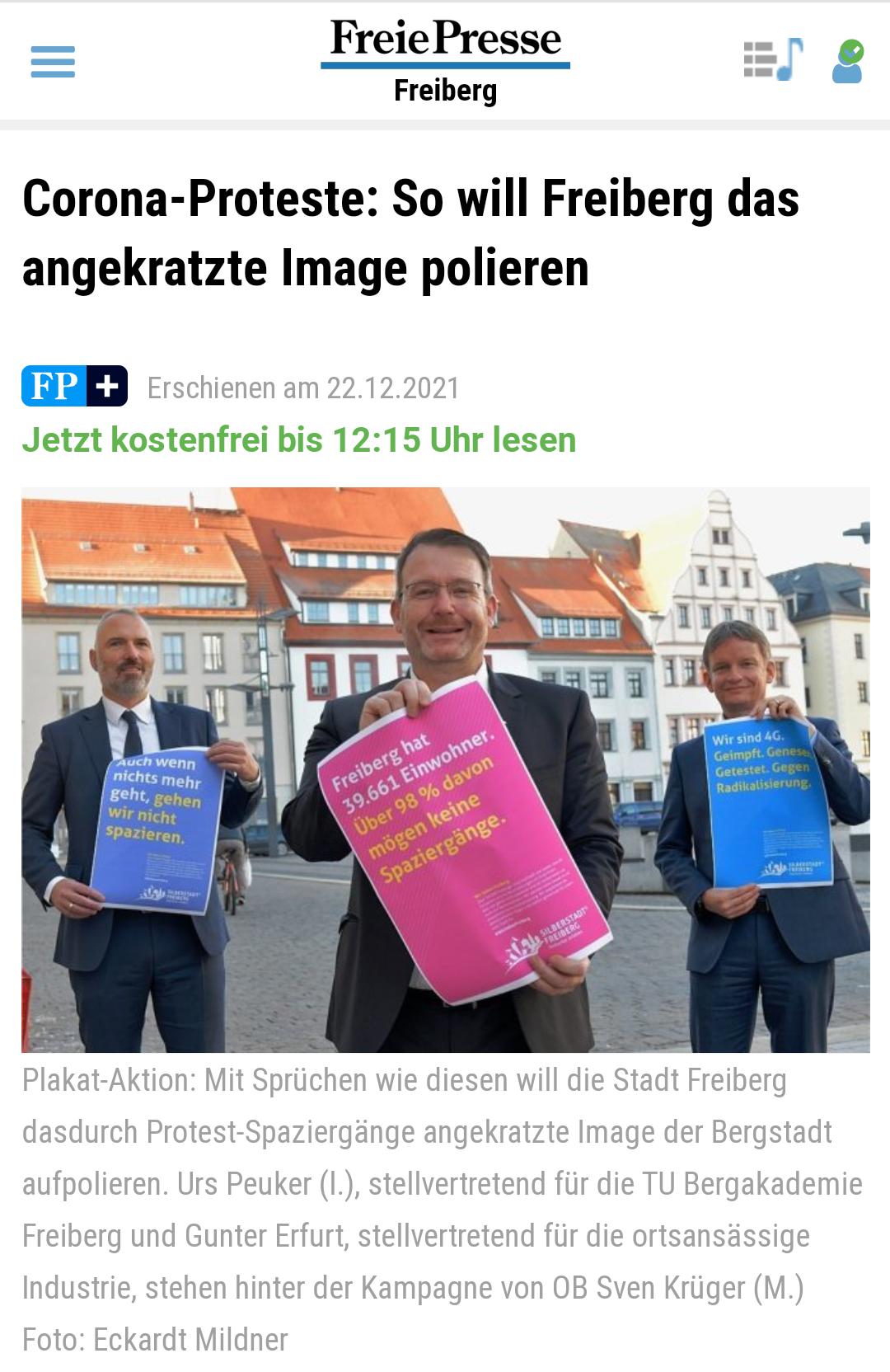 Heute berichtet die regionale "Freie Presse" über eine Aktion von Bürgermeister und Wirtschaft - siehe Foto.