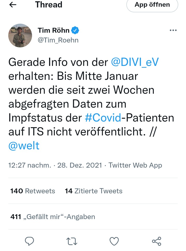 „Wegweisende Studie von Neil Ferguson zu Omikron“, schrieb der Virologe der Berliner Chartié auf Twitter*. „Ungeimpfte haben bei Infektion mit Omikron vs. Delta ca. 24% weniger Risiko einer Krh-Aufnahme.