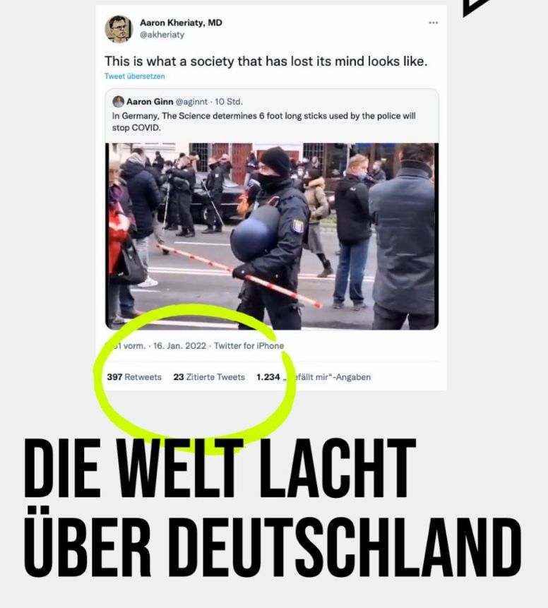 Und sollte da was in anderer Richtung passieren wie zb. Feuerwehr New York, läuft innerhalb von Stunden die Kapitulation von Oben, eben weil das die Achillesferse im System ist. Leider verstehen die meisten Menschen nicht ihre eigene Macht. Wenn die Mehrheit laut und bestimmt fordert das es reicht, ist Corona von heute auf morgen verschwunden, auf einmal reicht dann plötzlich ein einzelnes Medikament aus. Wetten?!