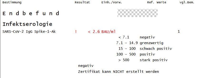 Ein Freund von mir hat einen Antikörpertest (richtig krank war er nie die letzten Jahre) mit folgendem Resultat gemacht: