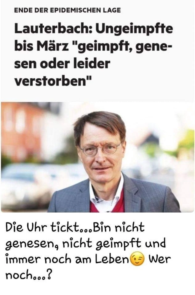 Wow, in der TAZ ist ein Interview mit Karl Lauterbach. Selbst ein Laie kann hier wunderbar das wahnhafte Denken dieses Politikers erkennen. Wiedersprüche, Abwehr, Irrsinn. Sagenhaft.
