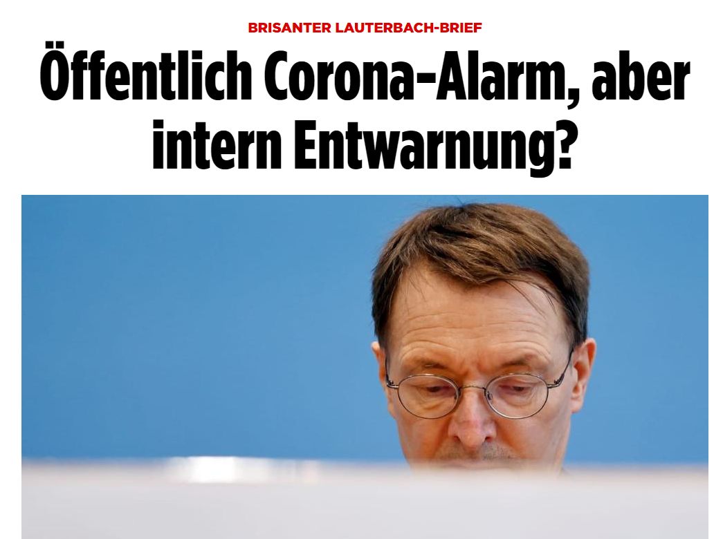 Mal eine Kurzgeschichte aus dem Irrenhaus, der Lauterbach dessen Pinocchio Nase schon quer durch Deutschland reichen würde, wenn eben das Gute an Märchen wahr wäre, er hat sich ja am Freitag bei Bild weiter beliebt gemacht :