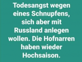 Bis vor kurzem konnte man sich noch an den fehlenden Friedensvertrag klammern und daß da zur gegebener Zeit nochmal nachgesteuert wird. Aber seit dieser Russenhaß auch auf privater Ebene um sich greift, fällt es auch mit Phantasie zunehmend schwer, in diesem Rest eines Landes Gründe zu finden, für die es aus russischer Sicht lohnenswert wäre, sich dafür stark zu machen.