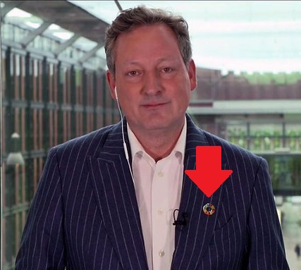 Die Anstecknadel des Great Reset soll wohl ein geöffnetes Arschl.... darstellen.