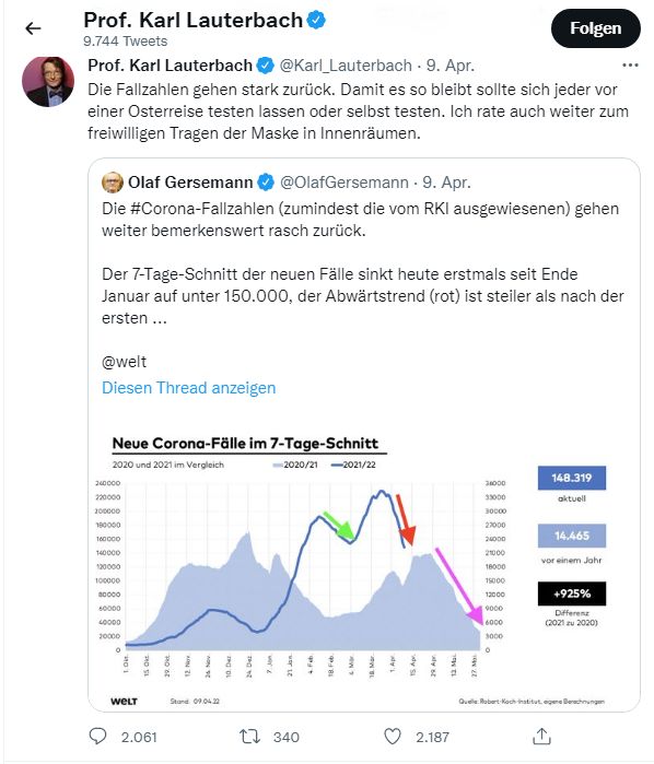 Die Fallzahlen gehen stark zurück ..mehr Testen lassen... der alte Fuchs.