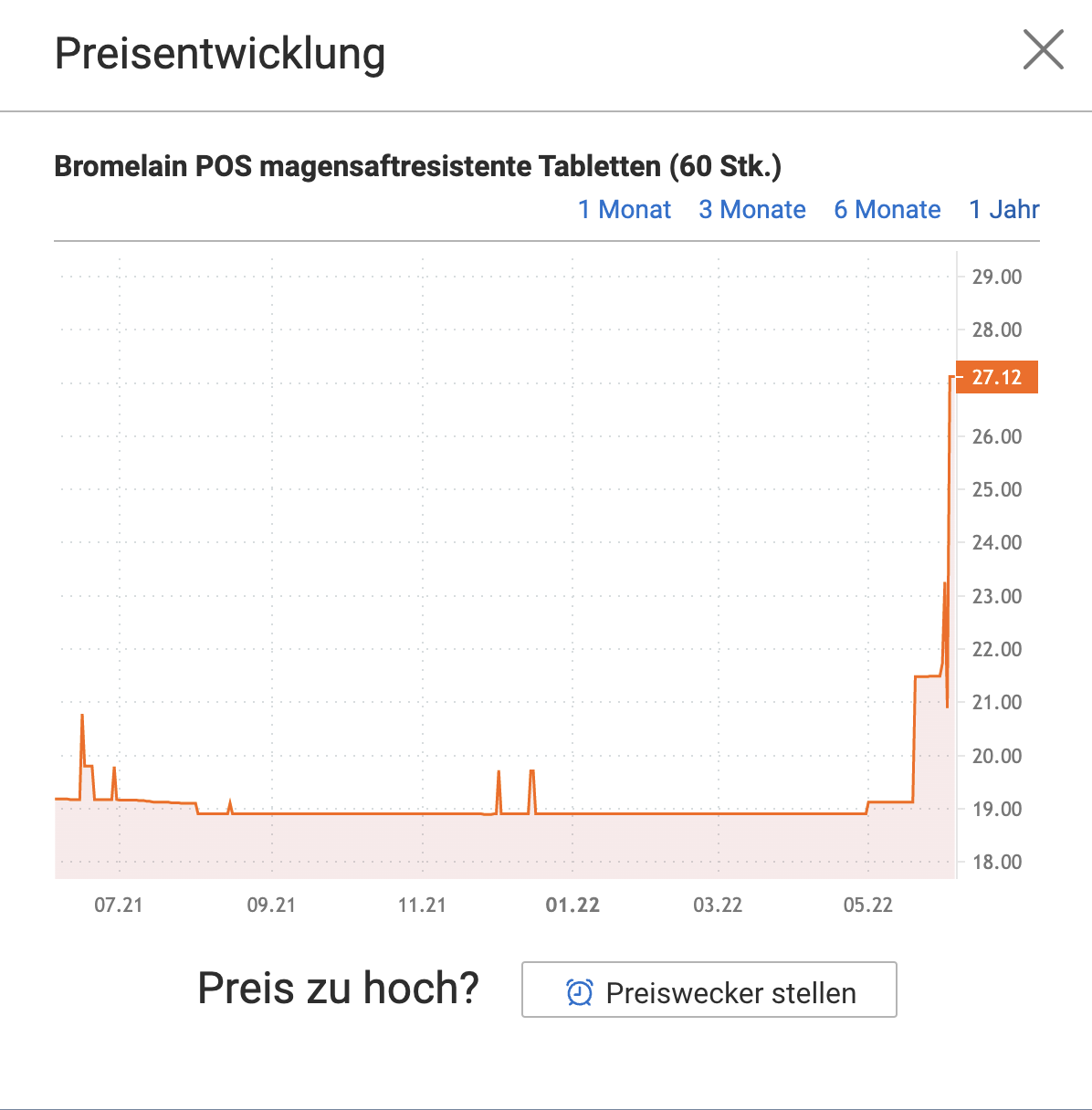 Als ich vor Monaten bestellt hatte und danach hier über Bromelain geschrieben habe, gab es noch Dutzende Angebote bzw. Apotheken und der Preis war ca. 19,xx EUR.