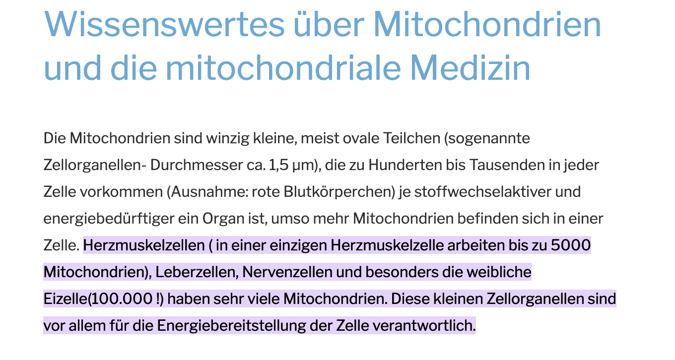 Ich sage nur 100.000 Mitochondrien in jeder Eizellen.