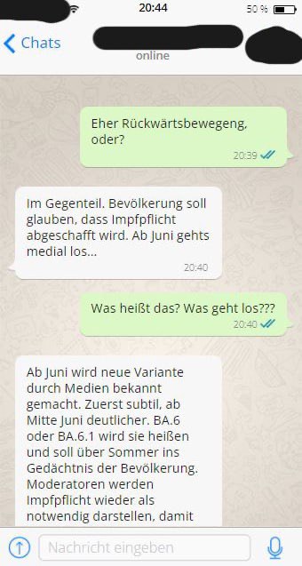Nach Informationen eines Insiders aus der österreichischen Regierung vom 8. Mai 2022 wird “Anfang Juni” eine neue Variante medial “aufbereitet und verbreitet” werden, die “BA6” heißen soll.