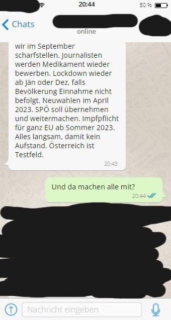 Eine nette Kollegin war völlig verzweifelt, weil sich ihre Tochter entgegen aller Ratschläge und besseren Wissens (die Tochter ist Ärztin) hat impfen lassen: Der psychische Druck, besonders der Leitungsebene, war einfach zu groß. Immerhin hat sie wegen einer Schwangerschaft mit der Impfung (Biontech) gewartet.