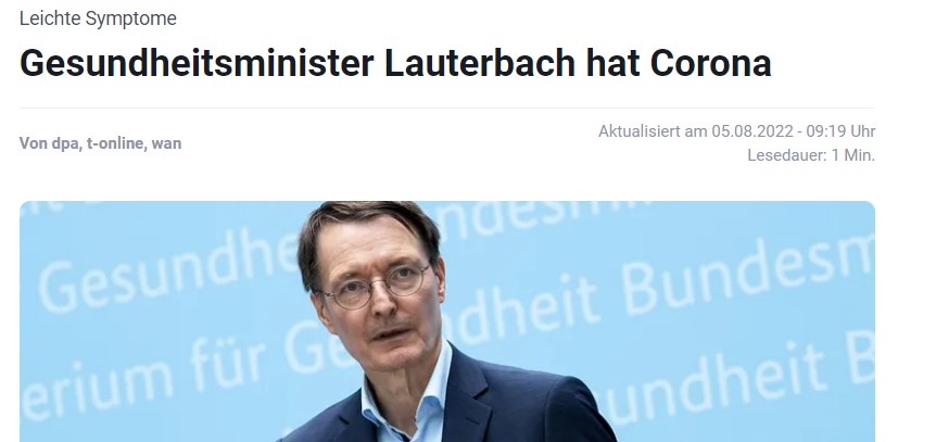 PS Lauterbach positiv? Dass was ich die ganze Zeit sage: Die Politiker sind alle angeschlagen. Kann noch passieren das der Kalle bald in den Holzkoffer gepackt wird. letz see..