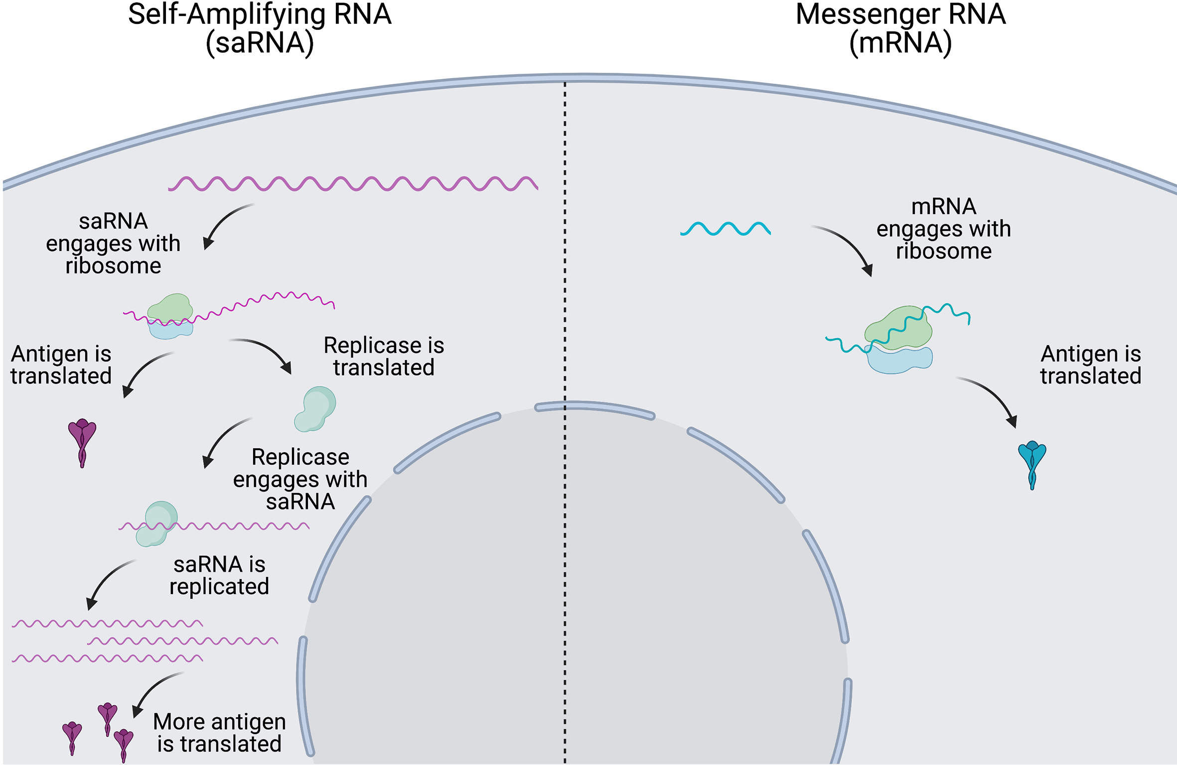 Ja, das wäre der Fall bei saRNA (selbst-amplifizierender RNA).