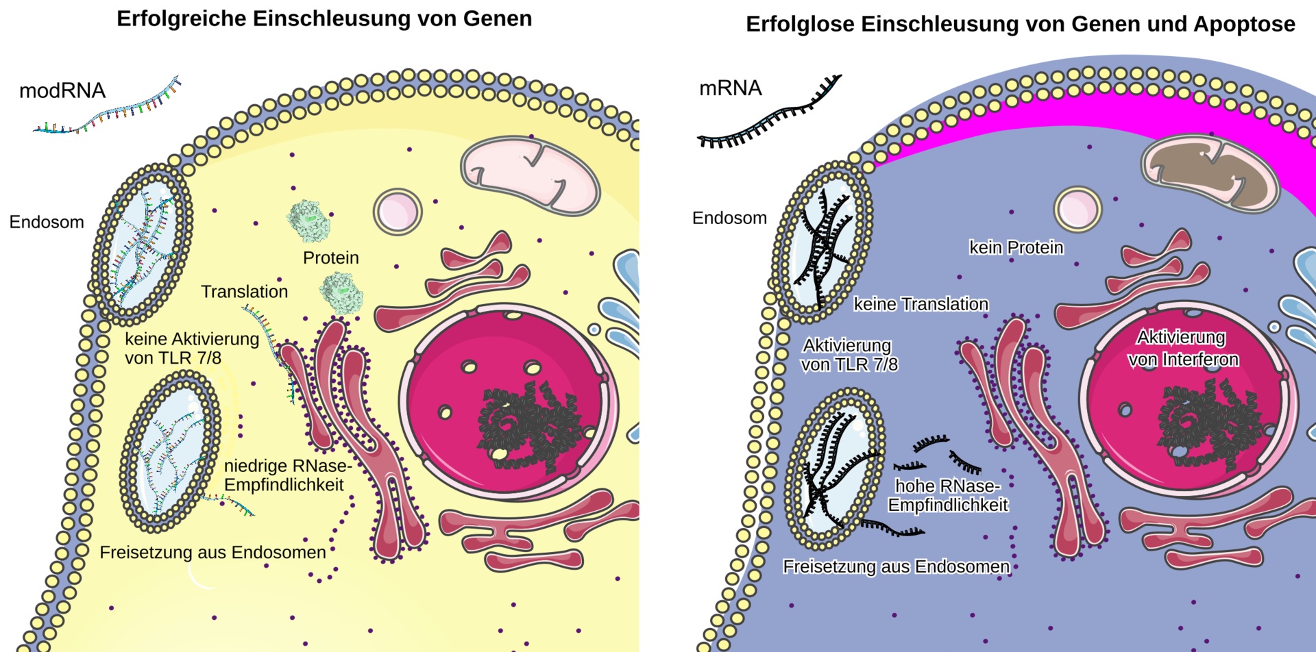 Nämlich sobald die modRNA (mit synthetischen Alphabet codiert, schwer abbaubar)