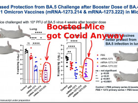 "Alle zehn Mäuse, die mit Moderna Ba.5-Booster geimpft wurden, wurden mit Covid infiziert, als sie mit dem Ba.5-Variantenvirus herausgefordert wurden, nachdem sie ihre Ba.5-basierten bivalenten Booster erhalten hatten!