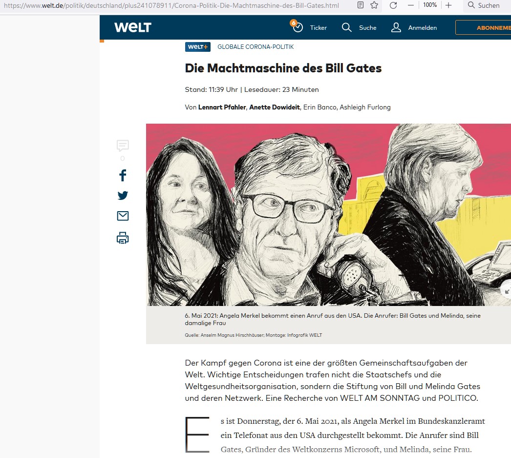 Anruf in der Wolfsschanze..."Es ist Donnerstag, der 6. Mai 2021, als Angela Merkel im Bundeskanzleramt ein Telefonat aus den USA durchgestellt bekommt. Die Anrufer sind Bill Gates, Gründer des Weltkonzerns Microsoft, und Melinda, seine Frau."