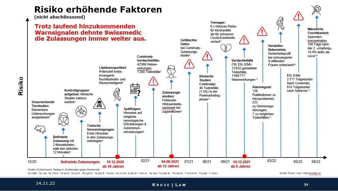 Die Grafik stammt aus dem Schriftsatz von Philipp Kruse, RA, der am 24.07. Strafanzeige gegen die schweizerische Zulassungsbehörde Swissmedic eingereicht hat und die 300seitige Klage am 14.11. der Öffentlichkeit in einer PK vorgestellt hat.