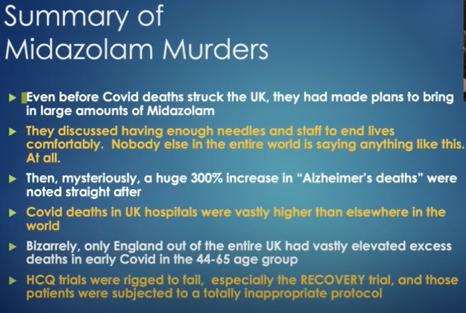 wurde bei Pflegeheimbewohnern und beatmeten Patienten im Endstadium angewendet, oft in viel zu hohen Dosen. Es wird vermutet, dass hier "Sterbehilfe" oder schlimmer durchgeführt wurde. Und natürlich hat man die Tode dann auf Covid geschoben.