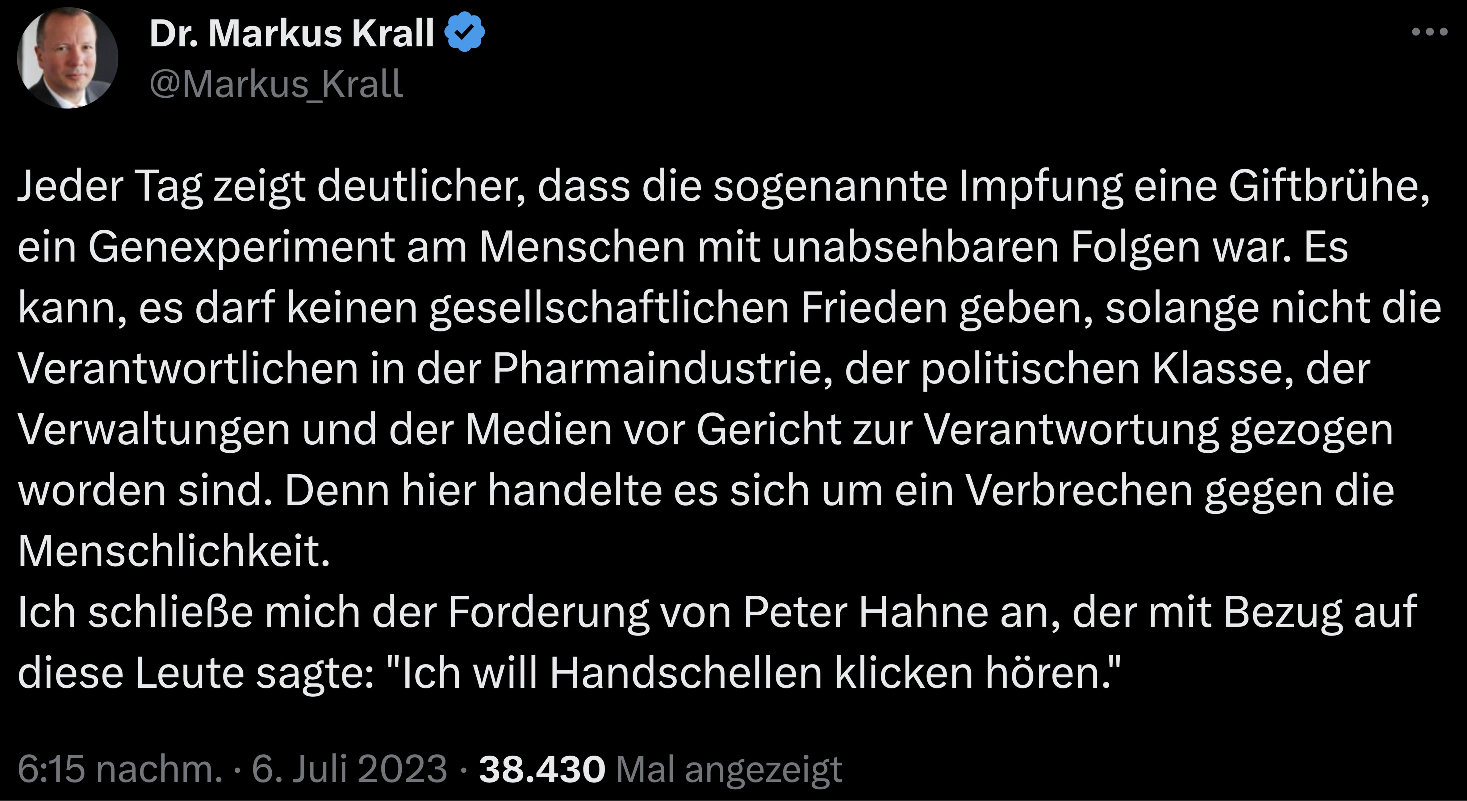 Mal sehen was rauskommt, wenn sich so ein Impfarzt freischießt.