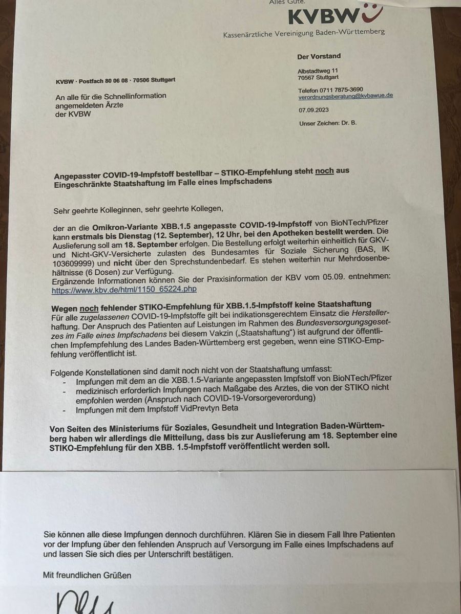Wegen noch fehlender #STIKO-Empfehlung für XBB.1.5-#Impfstoff keine Staatshaftung.