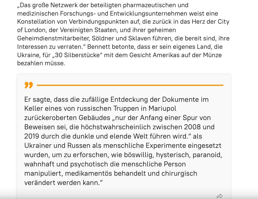 Eindrücklich bis beängstigend, noli.melavo. Wer weiß das schon, ich nicht. Den bescheuerten Teufeln, welche diese Labore betreiben, traue ich jede Teufelei zu!