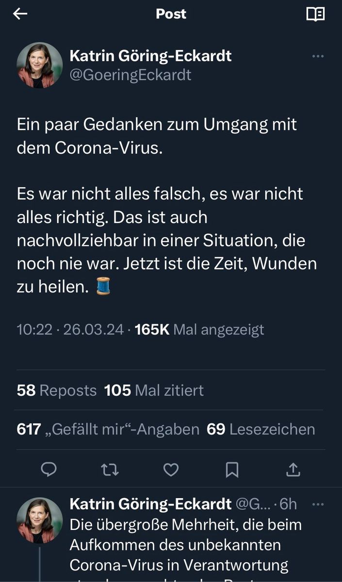 "Intonation und Gestik von Frau Buyx sind sehr interessant und hoffentlich in einigen Jahren ein Forschungsgegenstand in der Aufarbeitung. Sie scheint (nicht erst in diesem Moment) durchaus zu wissen, was während dieser „Pandemiebewältigung“ alles schief ging – speziell in Hinblick auf antidemokratische, grundrechtseinschränkende Prozesse. Dass all diese auf den Tisch kommt, würde ihrer eigenen Reputation massiv schaden.