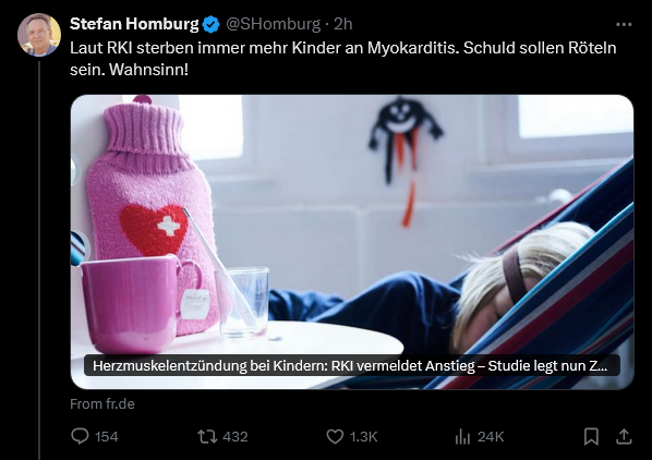 Laut RKI sterben immer mehr Kinder an Myokarditis. Schuld sollen Röteln sein. Wahnsinn! https://t.co/Y7pJPleJHZ