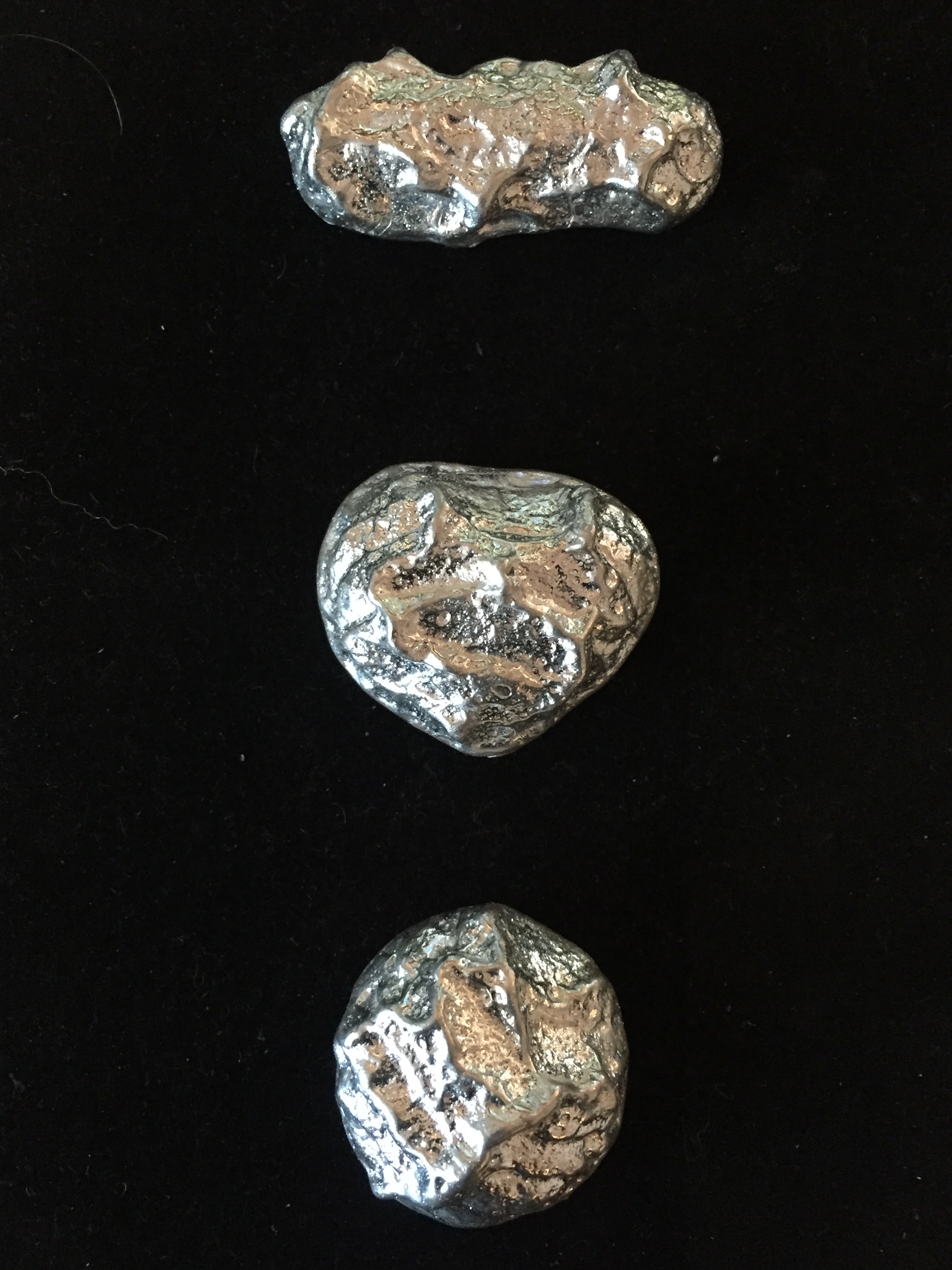 Unter anderem wurde Silber einfach in Formen gegossen, die aus Holz geschnitzt waren, dadurch gibt es die Maserung in den Barren. -