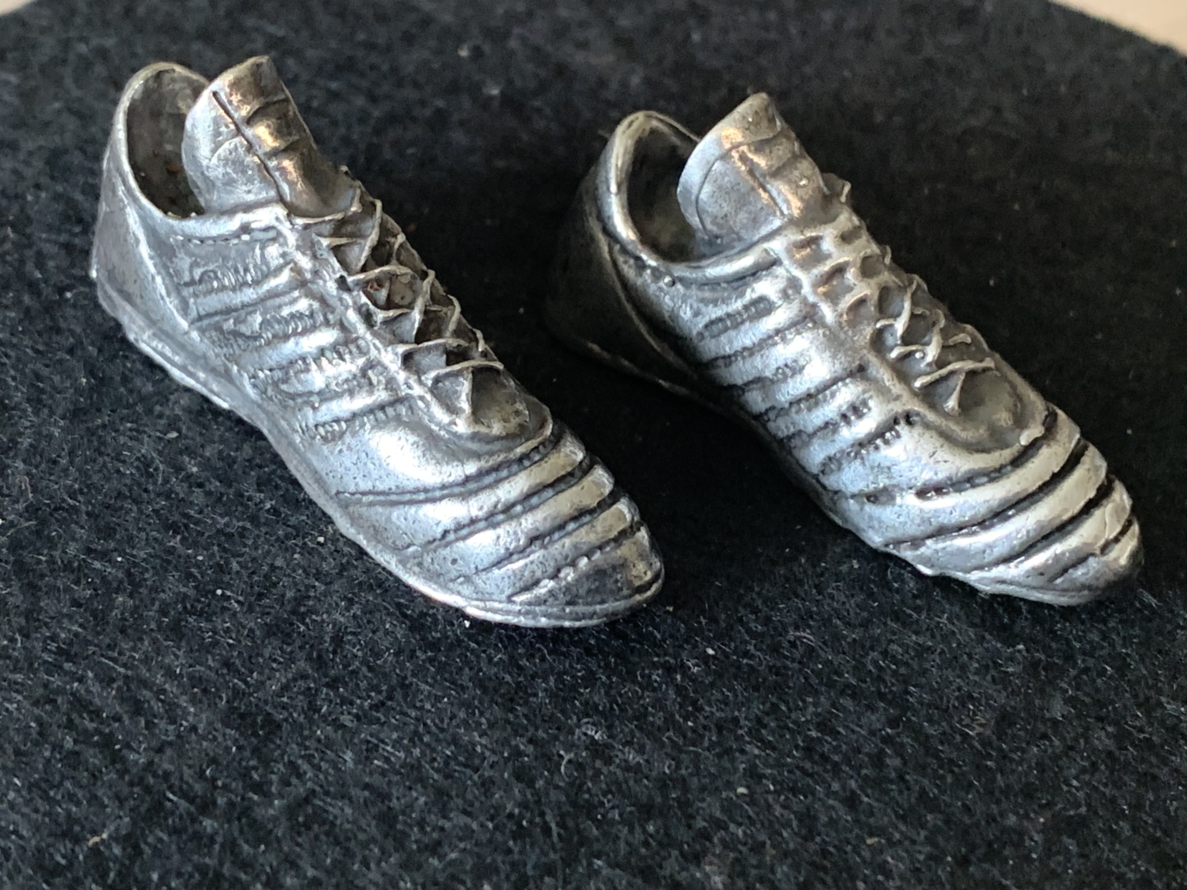 • Used Vintage Fußballschuhe, einmal in Silber und einmal in Antik Finish.