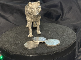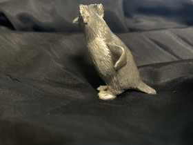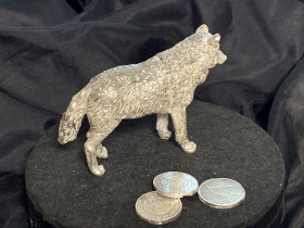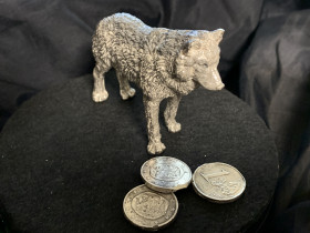 Leider ein Fehlguss, weil er ein hohles, rechtes, hinteres Bein hat, aber für das erste Exponat in der Größe echt vorzeigbar.