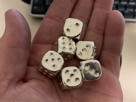 Speziell die Würfel wollten sich lange einfach nicht ohne Fehler gießen lassen, was an der Eigenschaft von Silber liegt, sich beim Erwärmen auszudehnen und beim Abkühlen wieder zusammenzuziehen.