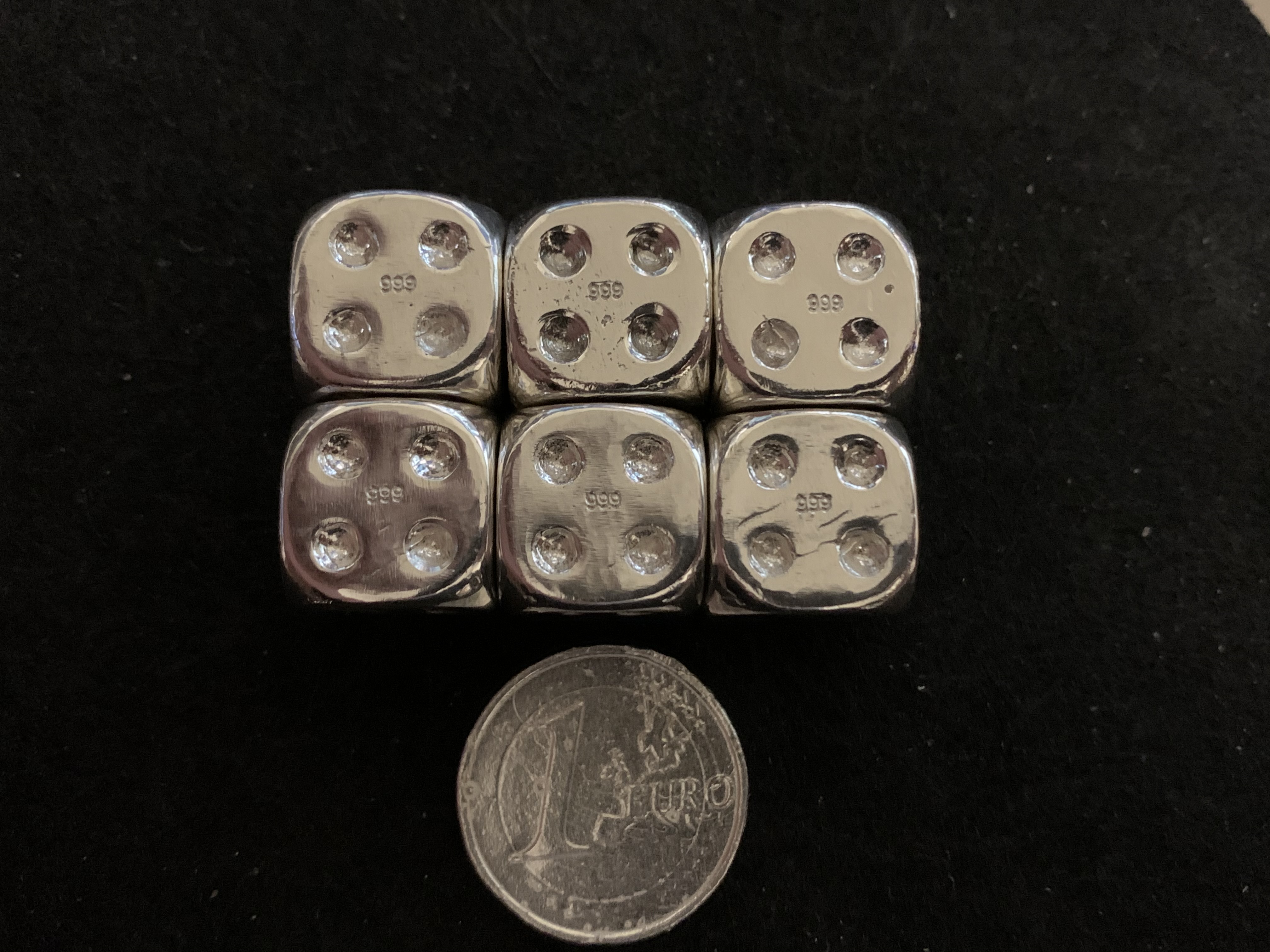 Was den Markt betrifft, da wird bei mir schon seit längerer Zeit die Arbeit tatsächlich honoriert. Ich stelle zwar keine besonders großen Mengen her, aber fast alles was ich herstelle findet auch Abnehmer, die bereit sind die Preise zu zahlen. Das Hobby trägt sich selbst, die neuen Geräte und Werkzeuge kann ich vom Verdienst kaufen und hin und wieder kann ich mir mal 10 Gramm Gold davon kaufen.So sahen die Würfel regelmäßig nach dem Guss aus und auch der Frosch war nicht ganz leicht.
