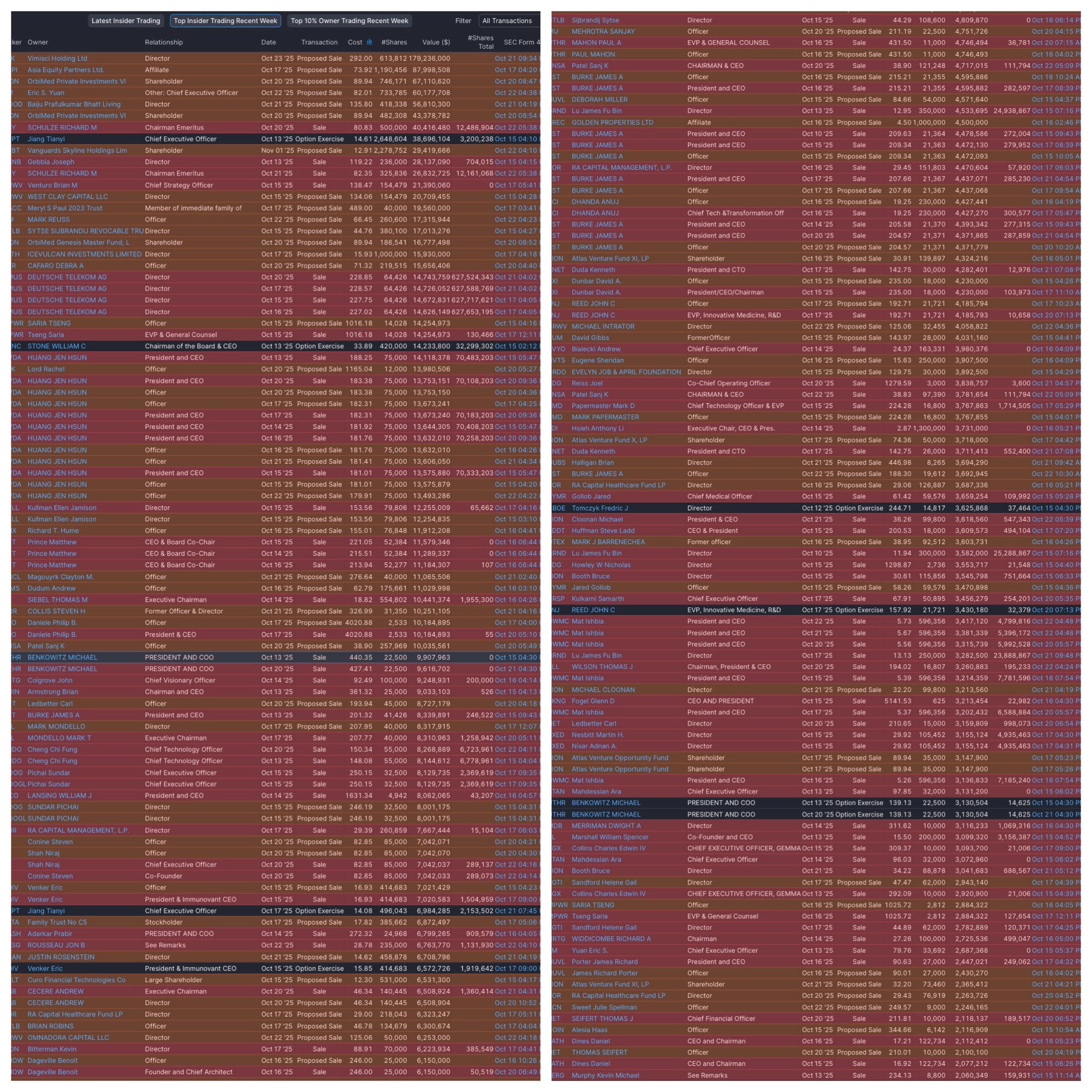 Top 200 insider trades in the last week. Not a single buy.
