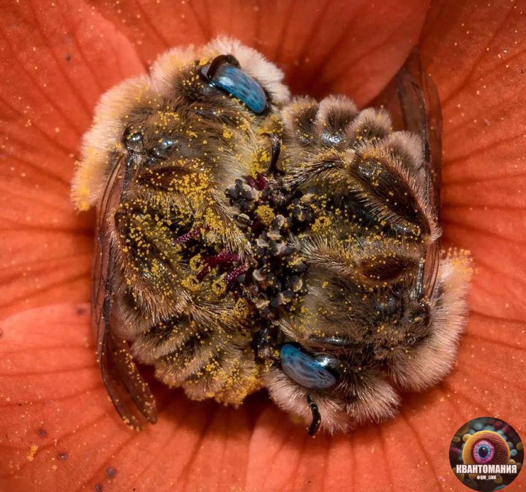 Bienen schlafen 5-8 Stunden am Tag und schlafen manchmal paarweise direkt in den Blüten ein, wobei sie sich die Beine halten 🐝