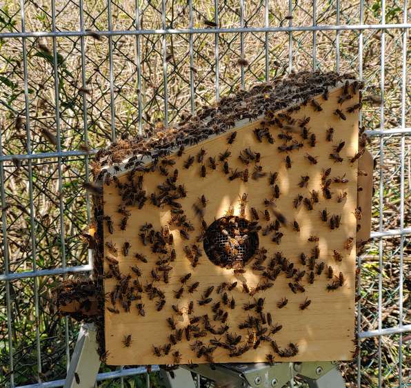 Und die paar Minuten auseinander fleddern macht denen nix, Randwabe raus und durchgeschoben, dann siehst du ja schon genug....meine sind in einem Kasten auf allen Waben voll, drum ja die Erweiterung nach oben auf Kiste 2 mit Drohnenrahmen.